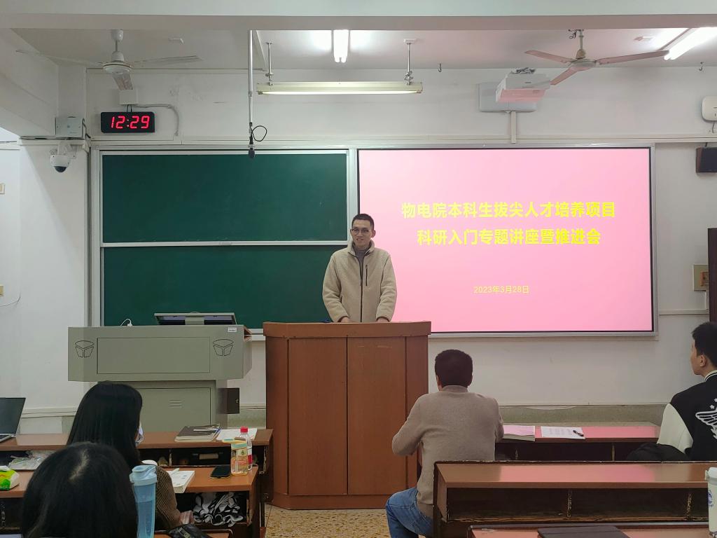 (通讯员 颜明伟)3月28日中午,星空网页版在格物楼220教室举行2022年物电院本科生拔尖人才培养项目科研入门专题讲座暨推进会。物电院物理系副系主任任昌亮教授,学工办主任黄维老师出席此次会议。