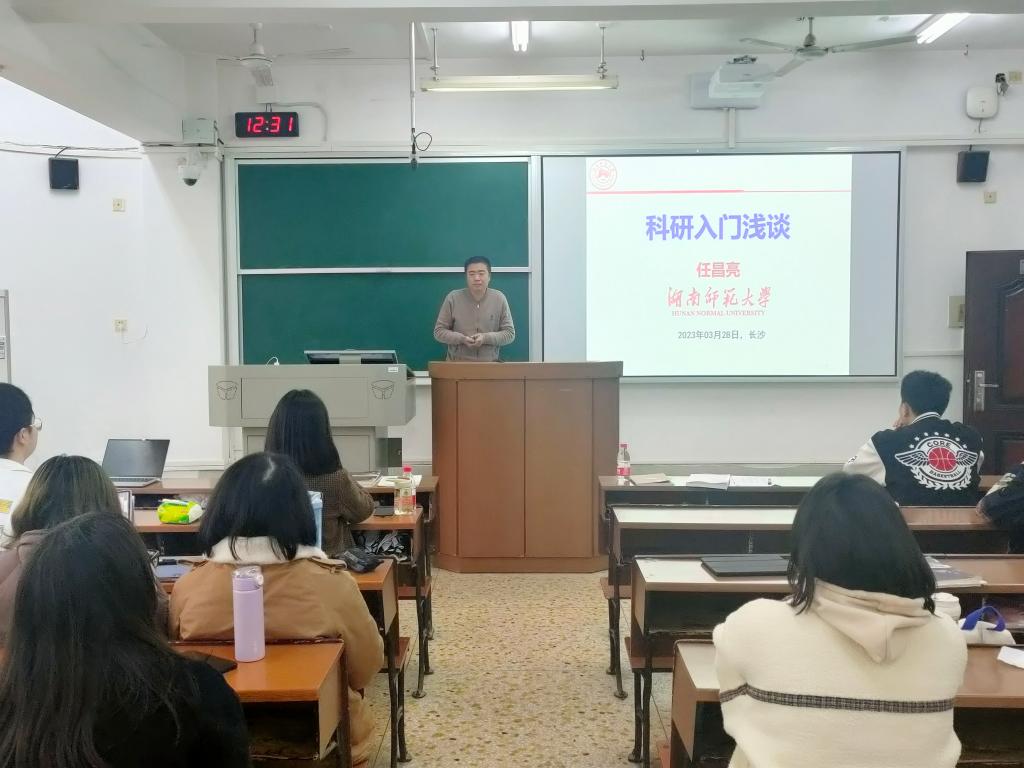 任昌亮向同学们展示了物电院院系的发展历程和学科设置,并介绍了物电院的师资队伍情况和科学研究方向。他指出,科研是创造性的工作,是对未知的探索和认识的过程,根据研究的目的、任务和方法的不同而划分出不同的类型。做好科研工作,需要选取合适的方向,充分利用现代工具,广泛获取学术资源,培养自己的风格与特色。他建议同学们在学好基础课程之上,拓宽科学视野,在阅读文献中增强提问与思考能力,积极、礼貌地与老师和组员沟通,讲究学术规范。