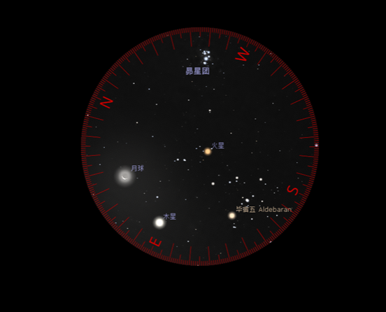 2024年7月30日和31日凌晨,可以看到火星、木星、毕宿五、昴星团、残月5个天体齐聚一堂。不要错过!