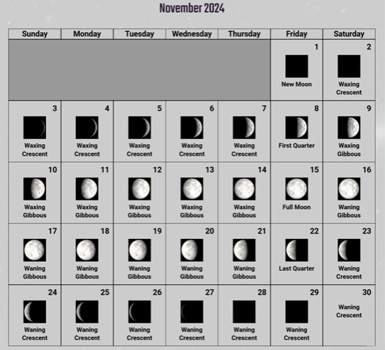 最早出现的是金牛座南支流星雨,极大期在11月4日到5日晚上。2024年11月5日的月相是蛾眉月,金牛座南支流星雨辐射点升高的时间段没有月亮,所以条件很好。在主高峰期间,可能会在几乎没有月亮的天空中看到多达10颗流星。天一黑,就可以开始观测金牛座南流星雨。