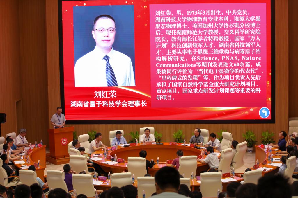2022年7月2日,由湖南师范大学主办的湖南省量子科技学会第一次会员大会暨成立大会在湖南师范大学图书馆报告厅胜利召开。出席大会的湖南省科学技术协会领导有:副主席陈松、学会学术工作部谭利蓉;出席大会的湖南省民政厅领导有:社会组织管理局局长朱志明、社会组织管理局主任李诗林;出席大会的高校领导有湖南师范大学副校长杨震、中南大学副校长何军、湖南师范大学原副校长匡乐满、湘南学院副校长黄小益、衡阳师院原副校长张登玉、湖南师范大学科技处处长马铭、湖南师范大学科技处副处长余自娥等;学会七名发起人:刘红荣、唐东升、景辉、文双春、肖伏良、匡乐满、何军和高校、科研机构成员单位会员、个人会员共220人出席大会。会议由湖南省量子科技学会筹备组成员湖南师范大学唐东升教授主持,湖南师范大学副校长杨震致欢迎辞,湖南省民政厅社会组织管理局主任李诗林宣读《同意召开湖南省量子科技学会第一次会员代表大会的批复》,湖南省科学技术协会副主席陈松、湖南省民政厅社会组织管理局局长朱志明分别做重要讲话。