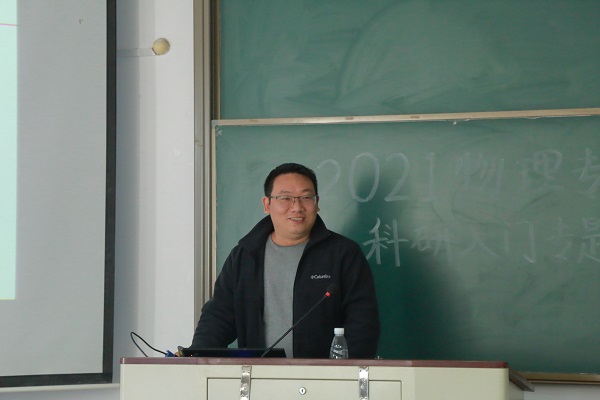 廖洁桥向同学们展示了物电院院系的发展历程和学科设置,并介绍了物电院的师资队伍情况和科学研究方向。他指出,科研是创造性的工作,是对未知的探索和认识的过程,根据研究的目的、任务和方法的不同而划分出不同的类型。做好科研工作,需要选取合适的方向,充分利用现代工具,广泛获取学术资源,培养自己的风格与特色。他建议同学们在学好基础课程之上,拓宽科学视野,在阅读文献中增强提问与思考能力,积极、礼貌地与老师和组员沟通,讲究学术规范。