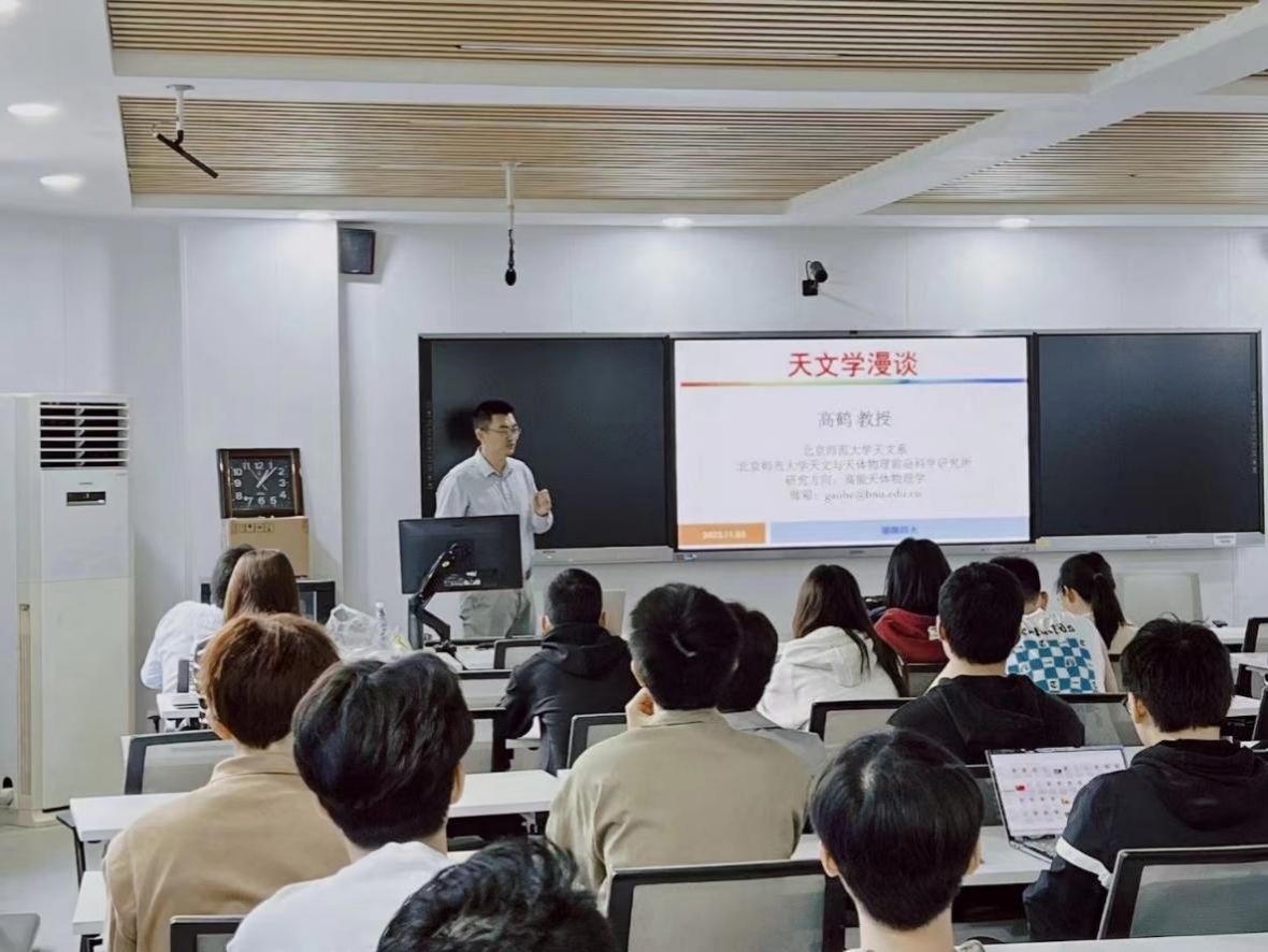 11月5日上午,北师大高鹤教授在326教室为本科生作了题为“天文学漫谈”的科普报告,办公室主任张阳进行了天文系研究生招生的推介。